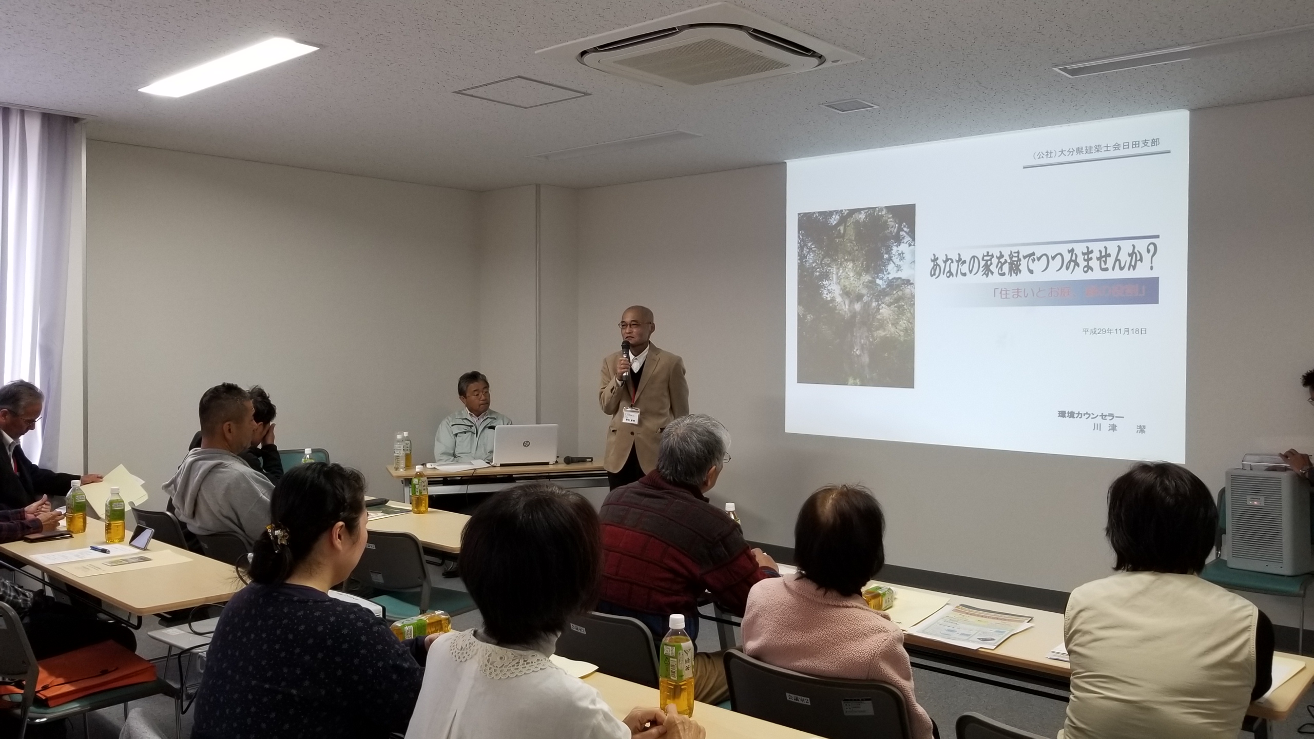 平成29年11月18日(土曜日)午後2時より、公益社団法人大分県建築士会日田支部主催の住宅セミナー講習会が、日田市複合文化施設アオーゼ(旧文化センター)2階会議室に於いて67名の参加で行われました。