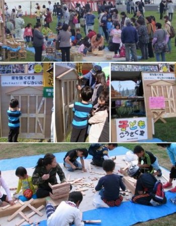 子ども達と工作を通して、物作りの楽しさ、木材とのふれあう体験の場を設けました。